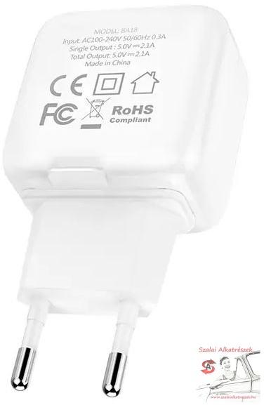 Borofone BA18 Hálózati Dual USB töltőadapter (5V, 2,1A, fehér)