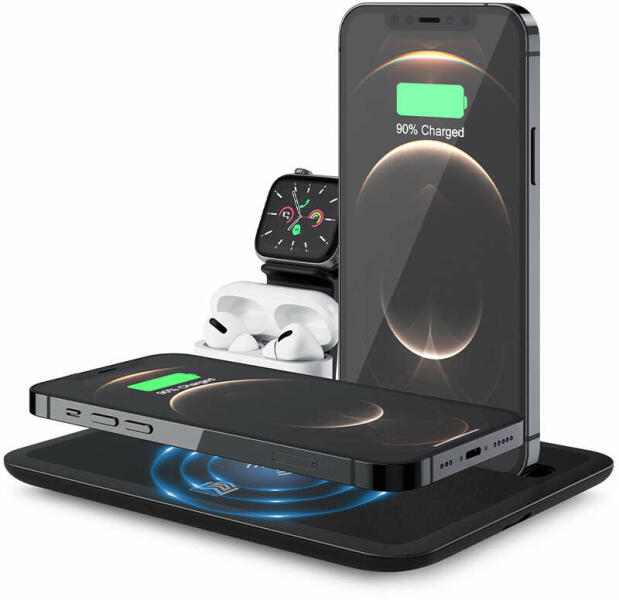 Boost 4 az 1-ben Vezeték nélküli töltőállomás - fekete Az egyszerű és gyors töltésért válaszd ezt az univerzális vezeték nélküli töltőt. A töltő 5W-tól 15W-ig minden támogatott teljesítményhez igazodik, legyen szó iPhone-ról, Huawei-ról, Samsung-ról vagy bármely Android telefonról. Így mindig a legoptimálisabb töltést biztosítja készüléked számára. Az AirPo