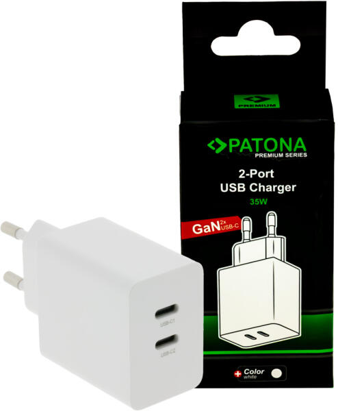 Patona PD 35W-os, 2db USB C tápellátású csatlakozóval rendelkező töltőadapter. Új generációs Gallium-Nitrid (GaN) technológia minden modern eszköz számára. Legyen szó telefonról, laptopról, tabletről, akkutöltőről vagy egyéb USB C töltési képességgel rendelkező eszközről. Élvezze a töltés szabadságát! INGYENES szállítás 30.000. - Ft felett! PATONA Premium GaN