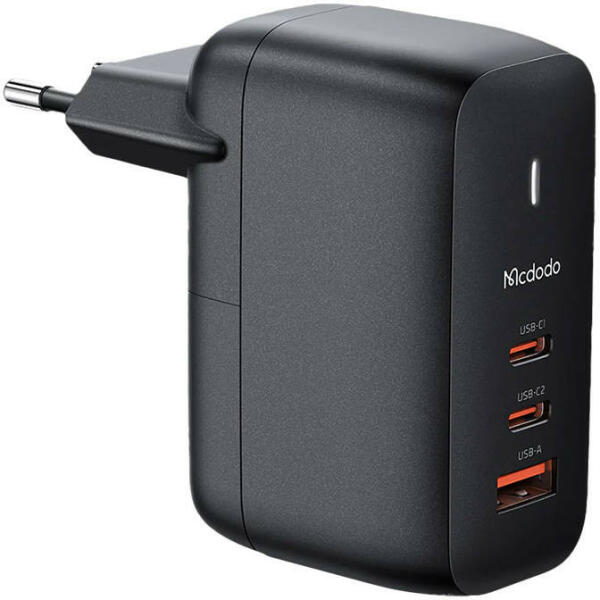 Mcdodo CH-0291 65W GaN Power Charger 2x USB-C, USB-A (black) Restore power to as many as 3 devices at once with the Mcdodo CH-0291. The charger features 2 USB-C ports and one USB-A port and supports 65W fast charging. It features a compact design and comes with a number of safety features for safe charging. Charge 3 devices at the same time You no longer need to occupy several outlets to charge mo