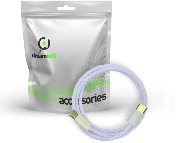 Dreamtech PD fonott kábel lila USB-C / USB-C 3A 60W 1M A Dreamtech PD fonott kábel kiemelkedő tartóssággal, gyors töltési és adatátviteli képességgel rendelkezik. Tökéletes választás mindennapi használatra, ha megbízható, időtálló, és nagy teljesítményű USB-C kábelt keresel, amely akár 60W-os töltést is támogat. A fonott kivitel extra védelmet nyújt a kopás ellen,