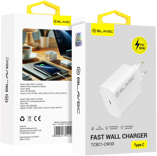 Type C port Rendelkezik egy Type C porttal, ami gyors és univerzális töltést biztosít különböző eszközök számára, biztosítva a sokoldalúságot és kompatibilitást. 30W teljesítmény 30W teljesítményt nyújt a gyors töltéshez, még a nagyobb teljesítményigényű eszközök számára is, rövid idő alatt. Lángálló PC anyag Lángálló PC anyagból készült, kivételes tar