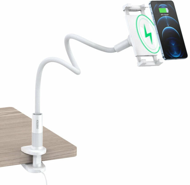 Szeretsz filmeket nézni a telefonodon, miközben kényelmesen fekszel a kanapén? Vagy talán a főzés a szenvedélyed, miközben követed a táblagépen szereplő receptet? A Choetech T548-S egy 2 az 1-ben modul, amely tökéletes az Ön számára. Egyesíti a vezeték nélküli töltő funkcióját és a stabil tartót, amely a 360 fokos elforgatásnak és a rugalmas karnak köszönhetően az