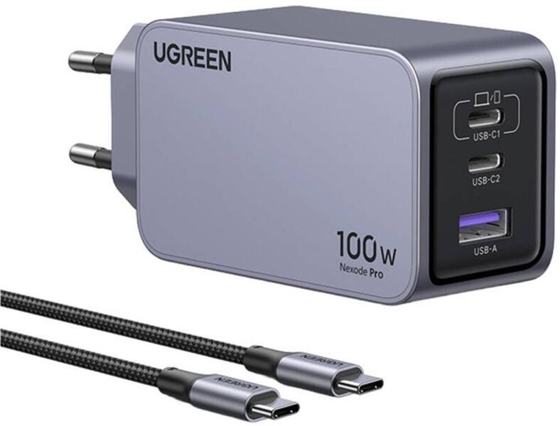 Ugreen Nexode Pro 100W, GaN, USB + 2x USB-C mains charger (gray) The UGREEN Nexode Pro is a small charger that offers great capabilities. It provides up to 100 watts of power, and with 3 available USB ports, you can freely renew the power of several devices at the same time. It supports fast charging standards and you will successfully use it in conjunction with many popular devices, including lap