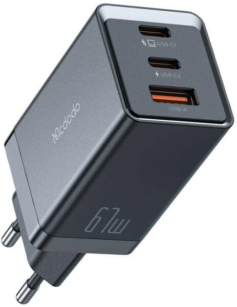 GaN Mcdodo CH-1541 network charger, 2x USB-C, 1x USB, 67W (black) Charge your devices quickly and safely. The charger offers 3 ports, so you can connect several devices to it simultaneously. What's more, GaN technology influences the efficient operation of the charger, and the thoughtful design ensures safe use. Fast charging The Mcdodo charger has ports such as 2x USB-C and 1x USB-A, allowing you