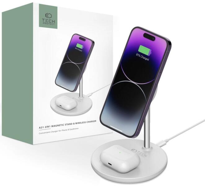 Csökkentsd a szükséges töltési kiegészítők számát a minimumra a Tech-Protect funkcionális A21 töltőállomásával. Ez az okos kütyü lehetővé teszi az összes MagSafe technológiával rendelkező okostelefon és az Apple Airpods vezeték nélküli fülhallgatók energia visszanyerését. Az A21 lehetővé teszi az eszközök bármilyen konfigurációban történő töltését - egy