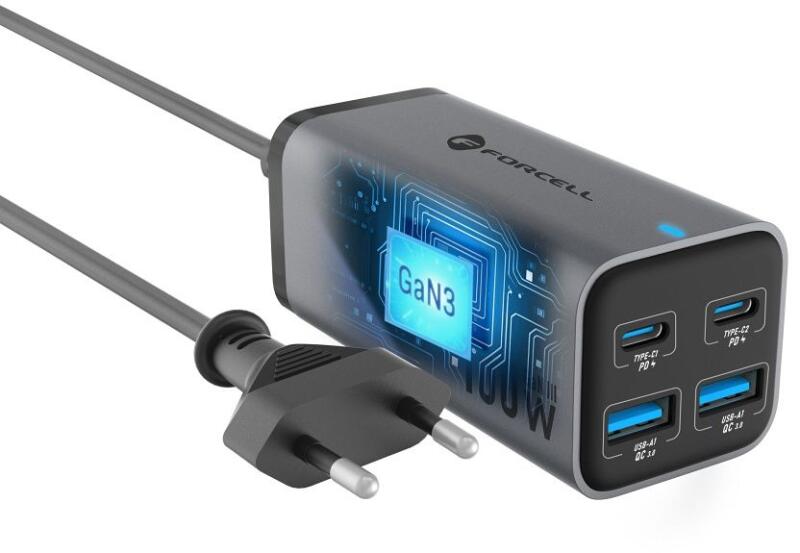 Ez az asztali töltő, amely GaN III technológiával készült, összesen 100 W teljesítményre képes. A Quick Charge 4.0, Power Delivery és Super Fast Charging 2.0 funkcióinak köszönhetően gyorsan tölti a telefonokat, táblagépeket és laptopokat. Négy porttal rendelkezik—kettő USB-C és kettő USB-A—és egyszerre négy eszközt is képes tölteni. GaN III technológia A III. gene
