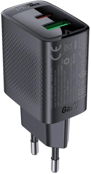 GaN Acefast A78 fali töltő USB-A és USB-C portokkal, akár 20W teljesítménnyel és Power Delivery támogatással - fekete. Az Acefast A78 fali töltő nagyszerű megoldás azok számára, akik megbízhatóságot és hatékonyságot keresnek. A GaN technológia alkalmazásának köszönhetően magasabb hatékonyságot, kisebb méretet és alacsonyabb üzemi hőmérsékletet kínál. A töltő