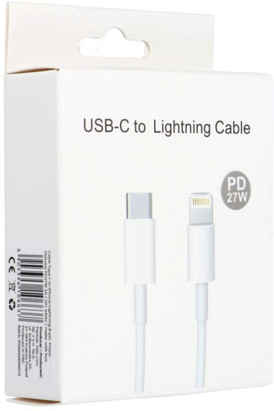 C-típusú kábel Lightning PD 3A 27W C291, 1 m - fehér Gyors töltőkábel Lightning csatlakozóval iPhone-hoz. Lehetővé teszi a lemerült Apple készülékek azonnali energia-visszatöltését. Apple márkájú készülékekhez dedikálva. A Lightning dugóval ellátott gyorstöltő kábel iPhone-hoz kompatibilis az Apple készülékekkel, így nemcsak az iPhone, hanem más Apple készüléke