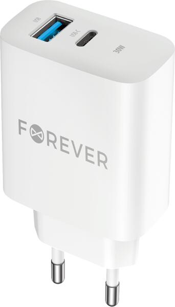 Specifikáció: - Bemeneti feszültség: 5 V - A csomagolás típusa: doboz - Márka: Forever - Szín: fehér - Csatlakozó: USB-A (aljzat), USB-C (női) - Kimeneti csatlakozók száma: 2 db. - Maximális teljesítmény [W]: 30 W - Maximális áramerősség: 3 000 mA - Indukciós töltés: nem - Gyors töltési szabvány: PD + QC (Power Delivery és QuickCharge) - Kábel a készletben: Nem - Tová