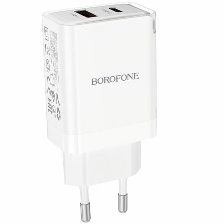 Borofone BN16 Tough hálózati töltőadapter, gyors töltőfej 45W, 3A, 1x USB-A, 1x USB-C, fehér