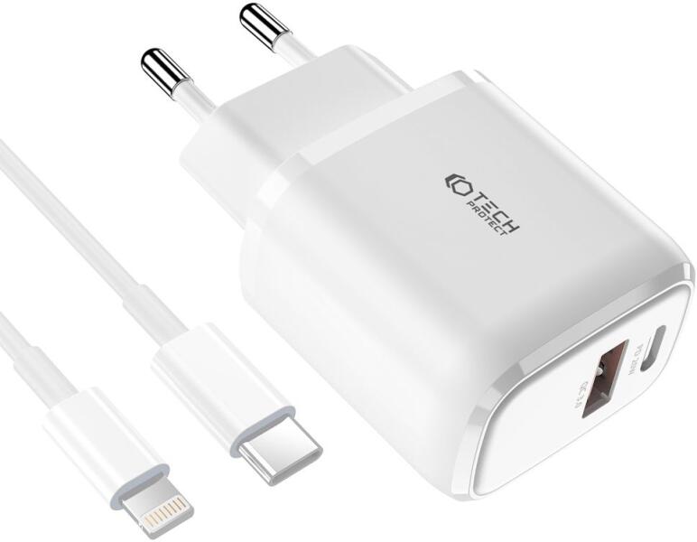 Kényelmes és praktikus C20W-os töltőkészlet és Lightning csatlakozós kábel a Tech-Protect márkától. Kétportos: USB-C (PD20W) és USB-A (QC3.0) és mindenekelőtt biztonságos energiamegújítás a mobileszközökön. Az alkalmazott Quick Charge és Power Delivery technológiák minimalizálják a töltési időt, gyorsan növelik az eszközök teljesítményét, a biztonsági rendszere