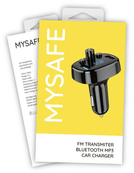 MySafe Bluetooth FM Transmitter (adó) Tulajdonságok Hatótávolság: 5m Frekvenciatartomány: 87.5-108MHZ Támogatott Audio formátumok: Flac, Mp3, WAV, WMA Maximális áramerősség: 3,1A Kilépő feszültség: 12-24V