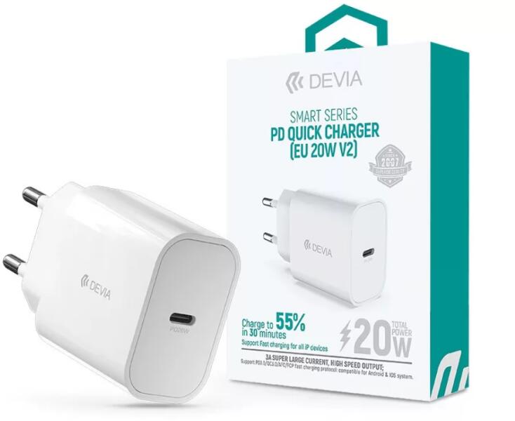- Bemenet: 100-240V-50/60HZ 0,5A - Kimenet: Type-C: 5V/3A, 9V/2.22A, 12V/1,66A - Max. teljesítmény: 20W - Anyag: tűzálló PC - Szín: Fehér - Súly: 49 g - Támogatja a PD3.0 / QC3.0 / AFC / FCP gyors...