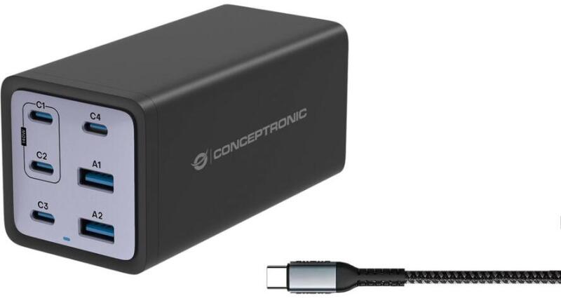 OZUL06BE 6-Port 200W GaN USB PD Charger with USB-C Charging Cable, USB-C x 4, USB-A x 2, QC 3.0, PPS, PD 3.1 Model Number OZUL06BE SKU 120551003101 High-Power GaN Technology: This charger utilizes advanced Gallium Nitride (GaN) technology, providing up to 200W of total power for faster and more efficient charging. Versatile Port Selection: Equipped with 6 ports including 4 USB-C ports (with PD 3.1