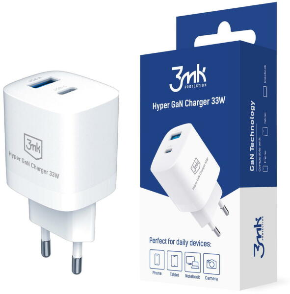 Hyper Charger 33W Nagy segítség egy kis kiadásban Egyszerre több eszköz töltése USB-A és USB-C portok két eszköz egyidejű töltéséhez. Mindkét port 33 W-os teljesítménnyel tölt, így a mobiltelefon, táblagép vagy laptop akkumulátorai azonnal feltöltődnek. A Hyper Charger 33W nélkülözhetetlen, ha sokat használja személyes és üzleti mobiltelefonját. Növelje mobilitás