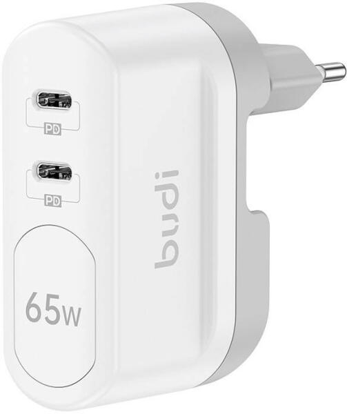 Budi 2x USB 65W A Budi töltő lehetővé teszi 2 eszköz egyidejű gyors töltését az USB-C portoknak köszönhetően. Ráadásul támogatja a PD65W gyorstöltési protokollt, és LED-fény funkciót kínál. Összecsukható és kompakt kialakításának köszönhetően tökéletes lesz utazáshoz. Gyors töltés A Budi töltő támogatja a PD65W gyorstöltési protokollt, így 15"-os MacBook P