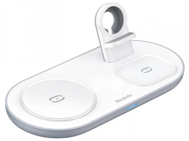 Wireless Charger Mcdodo CH-7060 3 in 1 15W (mobile/TWS/Apple watch) (white) Vezeték nélküli töltő Mcdodo CH-7060 3 az 1-ben 15W (mobil/TWS/Apple óra) (fehér) Most már csak egy vezeték nélküli töltőre van szüksége akár 3 különböző eszköz töltéséhez!A Mcdodo CH-7060 modell lehetővé teszi az okostelefon, az AirPods és az Apple Watch egyidejű vezeték nélküli töltését.