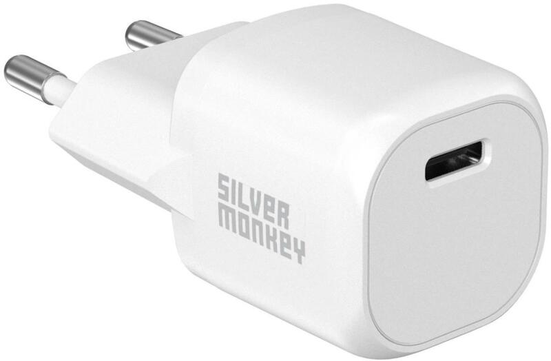 A Silver Monkey Mini fali töltő USB-C csatlakozóval, 20 W teljesítménnyel és Power Delivery technológiával - Fehér. A Silver Monkey Mini fali töltő ideális utazási kiegészítő, kompakt méretének köszönhetően könnyedén elfér egy táskában vagy hátizsákban. Az akár 20 W teljesítményű USB-C port biztosítja a különféle eszközök gyors töltését, a mobiltelefonoktó