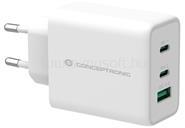 Hoco wall charger with fast charging function and triple ports: 2 USB-C and USB-A. It allows you to quickly charge mobile devices. It was made in GaN technology The charger is equipped with triple ports: 2 USB-C (65W) and USB-A (18W) allow you to charge 3 devices at the same time. The product supports PD, QC 3.0, PPS, FCP, AFC and other fast charging solutions. Made of flame-retardant PC, the char