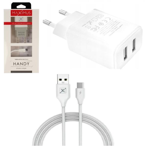 Maxximus hálózati töltő + kábel 2,1A USB-C - 2xUSB Maxximus Urban 2,1A hálózati töltő USB-C csatlakozóval és 2db USB konnektorral. Ideális az eszközök gyors és hatékony töltéséhez. Ez a töltő stabil és megbízható töltést biztosít, aminek köszönhetően minden nap használható akár otthon, irodában vagy akár utazás közben. Kompakt és elegáns kialakítású, minde