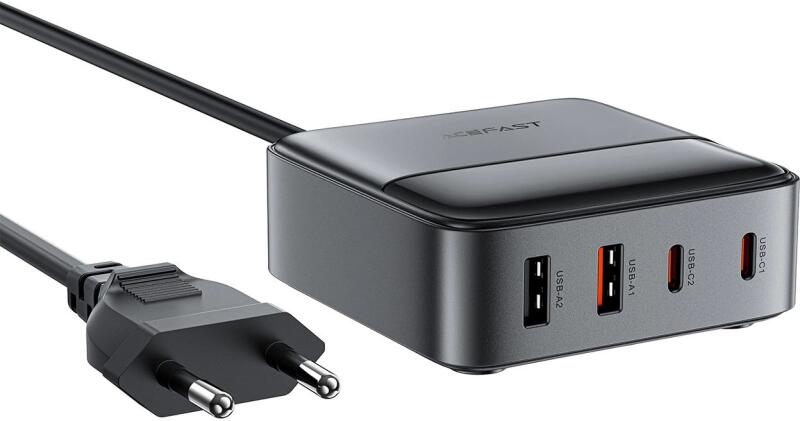 GaN Acefast Z6 asztali fali töltő 2 USB-A és 2 USB-C porttal 65W-ig - Fekete. Az Acefast Z6 fali töltő tökéletes választás mindenkinek, aki praktikus megoldást keres az irodai eszközök töltésére. Négy töltőporttal (2 USB-A és 2 USB-C) egyszerre akár négy eszközt is tölthet, maximális teljesítménye 65W. A hosszú, 1,5 méteres tápkábel lehetővé teszi a töltő szabad e