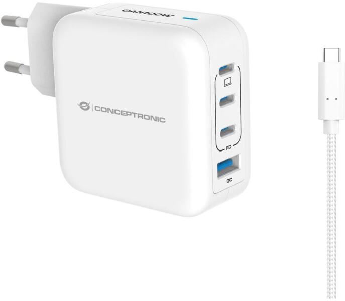 ALTHEA18W 4-Port 100W GaN USB PD Charger with USB-C Charging Cable, USB-C x 3, USB-A x 1, QC 3.0, PPS, PD 3.0 Model Number ALTHEA18W SKU 120550803101 High-Power GaN Technology: This charger utilizes advanced Gallium Nitride (GaN) technology, providing up to 100W of total power for faster and more efficient charging. Versatile Port Selection: Equipped with 4 ports including 3 USB-C ports (with PD 3
