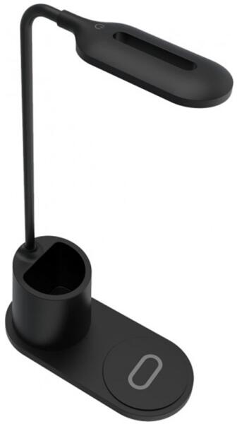 Rebeltec W600 - fekete színű, univerzális asztali LED lámpa tolltartóval és Qi vezeték nélküli töltéssel. A maximális teljesítmény 18W (9V / 2A, 5V / 2A). Az LED lámpa 3 fénymóddal rendelkezik, rugalmas fejpánntal, 250 lumen fényerővel és 2,5W teljesítménnyel. A különböző üzemmódok közé tartozik a meleg fehér fény (3100K), hideg fehér fény (6600K) és a 50%-os me