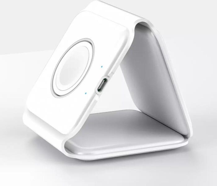 XPRO összehajtható 3in1 vezetéknélküli töltő MagSafe 15W fehér Minden az egyben összecsukható, vezeték nélküli töltő, a mobiltelefonok nélkülözhetetlen kelléke A 3 az 1-ben vezeték nélküli töltés háromféleképpen: 1. Használja lapjára fektetve, helyezze az asztalra, és egyszerre töltse fel vele a telefont, az iWatch-ot és az AirPod-ot. 2. Hajtsa össze egy állványb