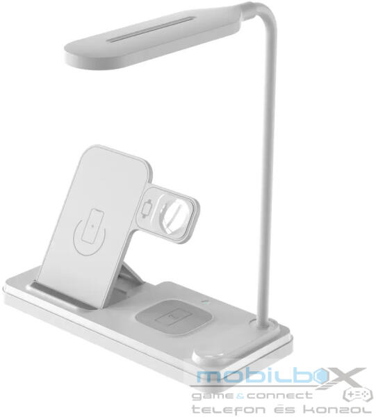 4in1 QI töltőállomás LED asztali lámpával 15W fehér 15W 4 az 1-ben LED asztali lámpa vezeték nélküli töltővel Bemenet: DC 5V/3A 9V/3A 12V/2.5A Mobiltelefon mágneses vezeték nélküli töltési teljesítmény: 15W, 10W, 7.5W és 5W Óra vezeték nélküli töltési teljesítménye: 2,5 W (max. ) Fülhallgató vezeték nélküli töltési teljesítménye: 5 W (max. ) Anyaga: ABS Term