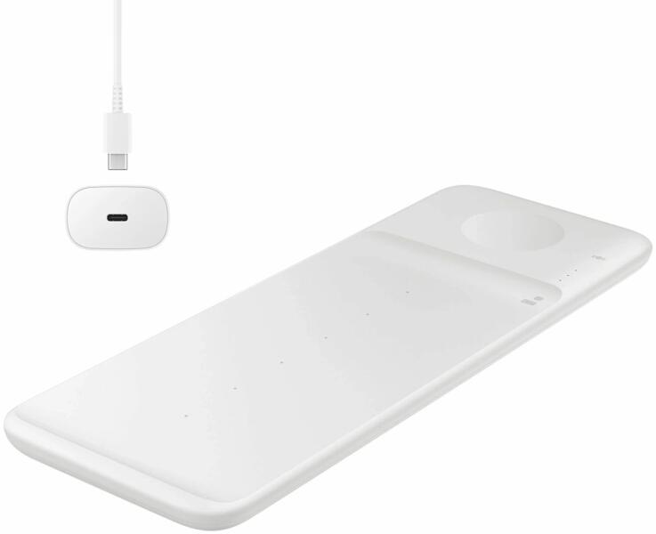 Samsung Trio EP-P6300TWEGEU 3 az 1-ben induktív töltő telefonhoz / Galaxy Watch / Buds - fehér + hálózati töltő + kábel