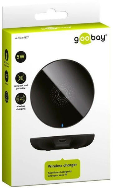 Goobay 5W QI vezeték nélküli töltő pad. A termék új, bontatlan!! Bemenet: 5 V Bemenet, típus: USB 2.0 mikroaljzat (B típus) Maximális bemenet: 2000 mAh Teljesítmény: 5 V Teljesítmény max: 1 A Kábel hossza: 1 m Szín: fekete Méretek (ØxH): 68x11 mm Súly: 40 g Android, IOS, Win kompatibilis!