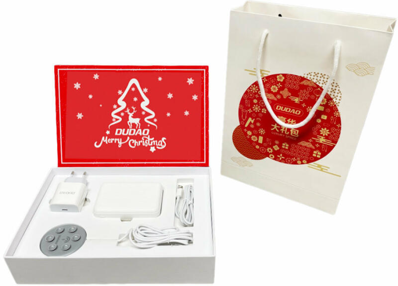 Dudao ajándékszett, dízsdobozbanTartalmaz: 1 db 10000mAh K21S powerbank, 1 db A21s vezeték nélküli töltő, 1 db PD A8 hálózati töltő és 1 db L6X lightning kábelA12s hálózati töltő tulajdonságia:Teljesítmény: 15 WCsatlakozó típusa: USBBemeneti feszültség: 5V ⎓ 2A; 9 V ⎓ 2 A (Ajánlott Quick Charge 3.0 technológiát használó és 18W teljesítményű hálózati töltő