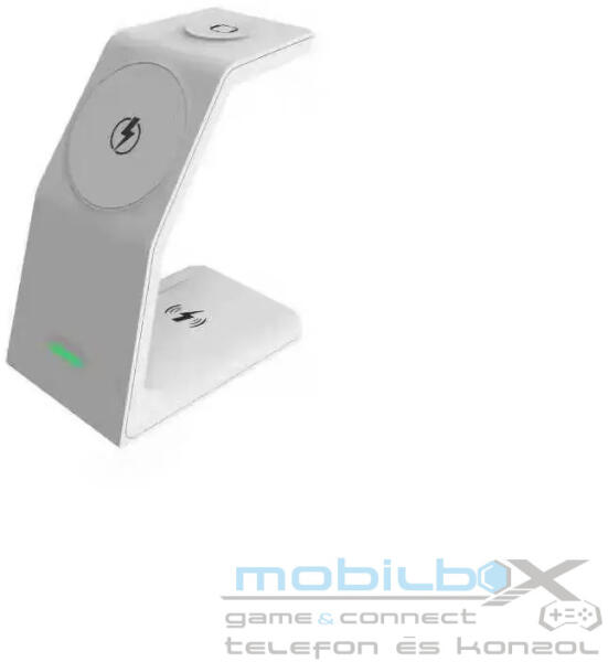 3in1 QI mágneses gyorstöltőállomás 15W fehér 15 W 3 az 1-ben mágneses vezeték nélküli töltő Bemenetek: 9V/4.0A, 12V/2.5A (PD/QC3.0) Mágneses telefontöltő vezeték nélküli kimenetek:15Wmax(Adapt10W/7.5W/5W) Watch vezeték nélküli kimenet:3W Airpods vezeték nélküli kimenetek:5W Termék nettó tömege:163g Termékméret:65*95*72mm Kompatibilitás: iPhone 12 sorozat vagy újabb,