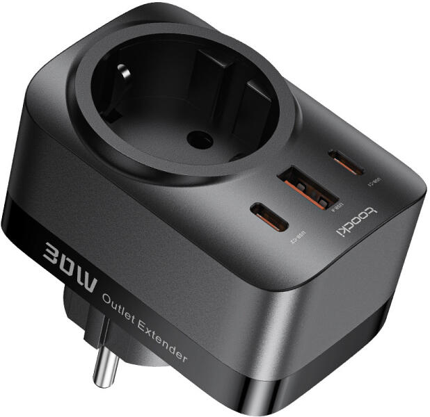 Ez a praktikus 3 portos Toocki gyors töltő 3 eszköz egyidejű töltését is lehetővé teszi. Praktikusan egy AC kimenet is van az adapteren. Quick Charge 3.0, Power Delivery 3.0 30W Portok: 1 x USB, 2 Type-C, AC aljzat, AC bemenet Type C 1 kimeneti feszültség: 5V/3A 9V/3A 10V/2.25A 12V/2.5A/15V2A 20V/1.5A (30W Max) Type C 2 kimeneti feszültség: 5V/3A 9V/3A 10V/2.25A 12V/2.5A/15V2A 20V/1.5