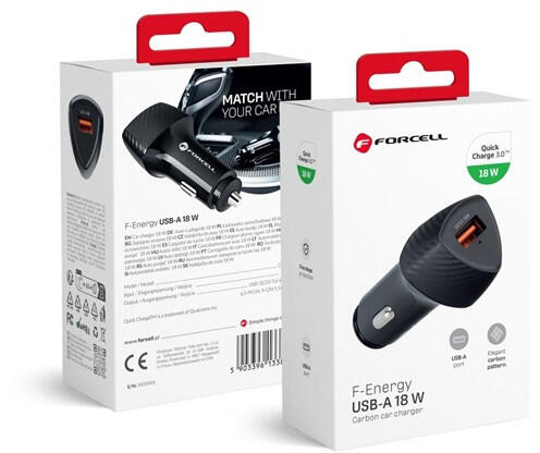 Autóstöltő a FORCELL CARBON sorozatból. Legfeljebb 18 W teljesítményigényű készülékekhez tervezték. Univerzális USB töltőporttal felszerelve. Támogatja a QC 3.0 gyorstöltési protokollt. Többszintű biztonsági rendszerrel rendelkezik. A FORCELL CC50-1A autós töltő univerzális USB porttal van felszerelve , amely lehetővé teszi szinte bármilyen eszköz csatlakoztatását é