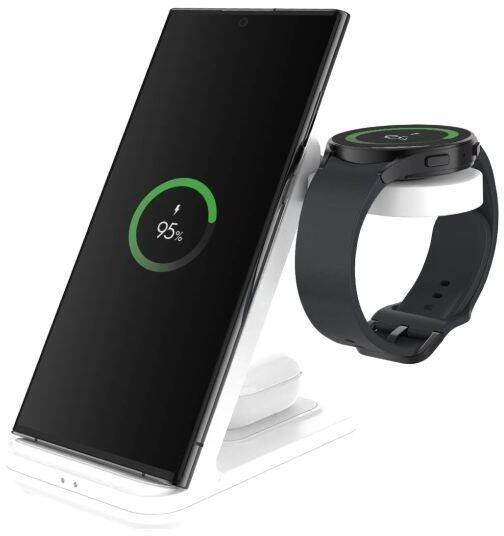 Tölts fel egyszerre akár három kompatibilis eszközt ezzel az eredeti Samsung Wireless Charger Trio töltővel. A bal oldalon két okostelefont vagy egy okostelefont és egy Galaxy Budst tölthetsz. A jobb oldal kizárólag a Galaxy Watch számára van fenntartva, és a beépített mágnes segítségével a karórád pozícióba kerül, amikor leteszed. Elegáns és egyszerű kialakítása tök