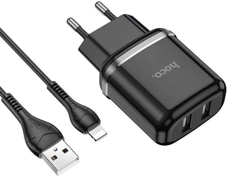 Hálózati töltő adapter 2x USB aljzattal Tartozék 1m Lightning kábellel USB1 Áramerősség és feszültség: 5V / 2.4A USB2 Áramerősség és feszültség : 5V / 2.4A Több lépcsős intelligens védelemmel ellátva