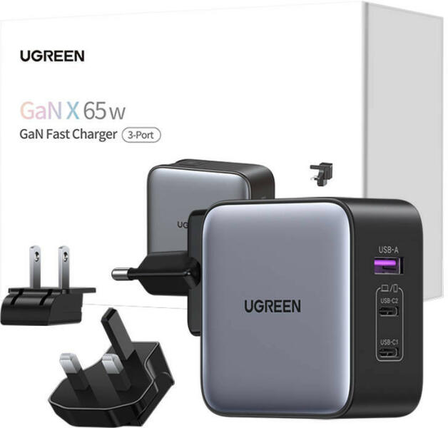 Ugreen Nexode hálozati töltő, 2x USB-C + USB, 65WGyakran utazik? Szerezzen be egy olyan töltőt, amely a világ bármely pontján működik! A UGREEN termék akár 65 W kimeneti teljesítményt kínál, és 3 porttal rendelkezik, amelyek támogatják a gyorstöltést. A GaN technológiának köszönhetően sikerült nagy teljesítményt nyújtania, miközben kompakt mérete megmaradt. Emellett