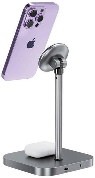 INVZI MagFree 3-in-1 inductive charger for iPhone, iWatch, Airpods (grey) Charge up to 3 devices simultaneously and use your smartphone comfortably. The INVZI Induction Charger allows you to wirelessly charge your iPhone and AirPods, and is also equipped with a USB-C port to charge your smartwatch or tablet. The accessory is also distinguished by its high power output and adjustable height (approx