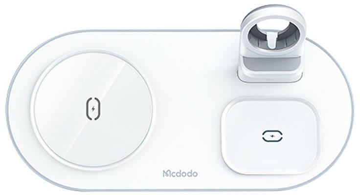 Wireless Charger Mcdodo CH-7062 3-in-1 15W (phone/TWS/Apple watch) (white). Now you only need one charger to charge all your devices! The Mcdodo 3-in-1 wireless charger supports fast charging with up to 15W maximum power and supports MagSafe. It allows inductive charging of three devices at the same time, and thanks to its wide compatibility, you can use it with equipment from many popular brands.