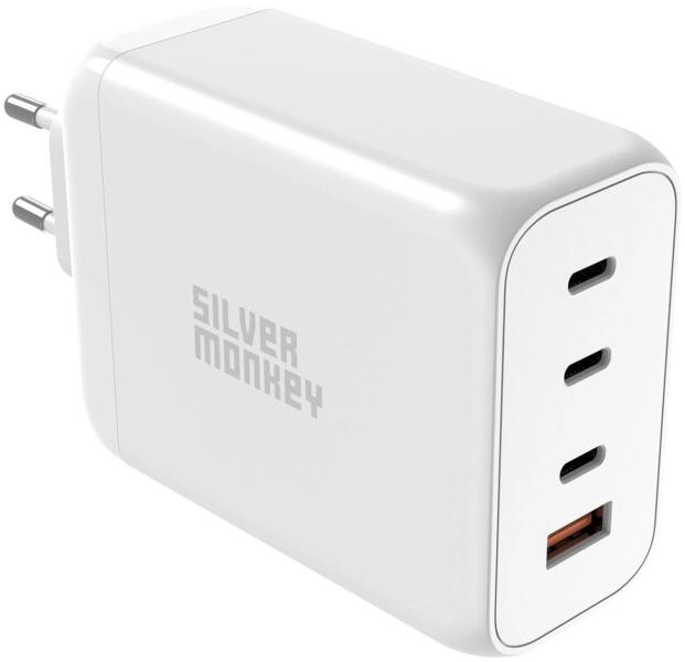 A Silver Monkey SMA154 GaN töltő elengedhetetlen segítő utazáskor, otthon és az irodában. A GaN technológia használatának köszönhetően kompakt méreteivel és alacsony súlyával tűnik ki. A négy eszköz egyidejű töltésének képessége rendkívül funkcionálissá és univerzálissá teszi. Ezenkívül gyors és hatékony töltést garantál a Quick Charge és a Power Delivery p