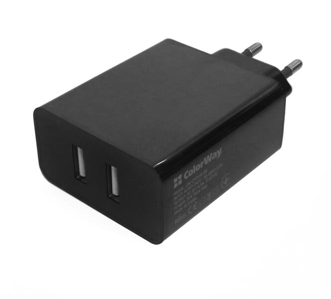 TÖLTŐ Colorway 2xUSB AUTO ID 4.8A (24 W) töltő - egy nagy teljesítményű adapter, amely két 2,4 A kapacitású USB-porttal van felszerelve, egy vagy két port teljes terhelésével 4,8 A-ig. Mindkét port automatikus terheléselosztással