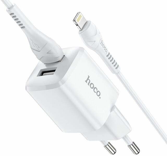 Hoco N8 Briar Hálózati Töltő 2Xusb 2.4A + Lightning Kábel Fehér Tulajdons gok: Töltő fej csatlakozó típusa: 2 x USB-A Adatkábel csatlakozó típusa: USB-A - Lightning Adatkábel hossza: 1 m Kimeneti fezsültség: 5V 2.4A Méret: 74 x 36 x 30 mm
