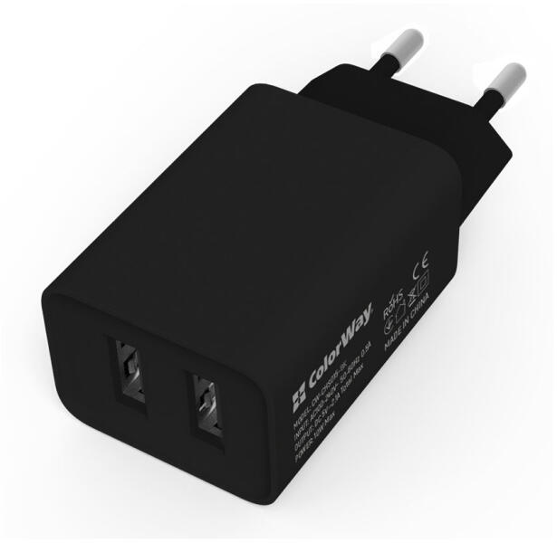 TÖLTŐ Colorway 2xUSB AUTO ID 2.1A töltő (10 W) - egy nagy teljesítményű adapter, amely két USB-porttal van felszerelve, összesen akár 2,1 A terheléssel. Mindkét port között automatikus terheléselosztás van, és a teljes kimeneti