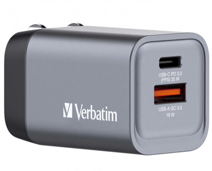 Verbatim GNC35 35 W-os teljesítmény USB-C (1x) és USB-A (1x) portok Gyors töltési technológia Kompatibilis laptopokkal és okoseszközökkel Kompakt méret Hordozható design Túlmelegedés elleni védelem Ideális utazáshoz Strapabíró kialakítás