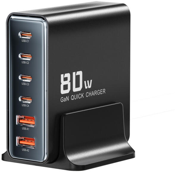 Ez az 6 portos Toocki dokkoló állomás nagyon praktikus, egyszerre akár 6 eszköz is tölthető egyidőben az töltő állomással. A 80 W összteljesítménynek köszönhetően a gyorstöltési sebesség hatékonyan kielégíti napi töltési igényeit. Quick Charge 3.0, Power Delivery 3.0 80W 140 W-os GaN többportos töltő Portok: 2db USB A, 4db Type C USB Type C 1: 30W USB Type C 2: 20W US