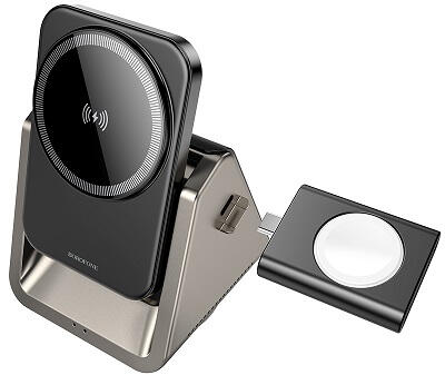 BOROFONE BQ30 3in1 mágneses vezeték nélküli töltő, szürke