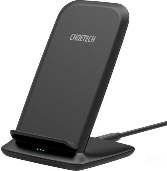 Wireless Charging Stand Choetech T555-F 15 W (black) Vezeték nélküli töltőállvány Choetech T555-F 15 W (fekete) Élvezze okostelefonja gyors és kényelmes vezeték nélküli töltését. A Choetech T555-F töltőállvány akár 15 W teljesítményt biztosít, és okos kialakításának köszönhetően vízszintesen és függőlegesen is elhelyezheti telefonját. Így szabadon nézhet vide
