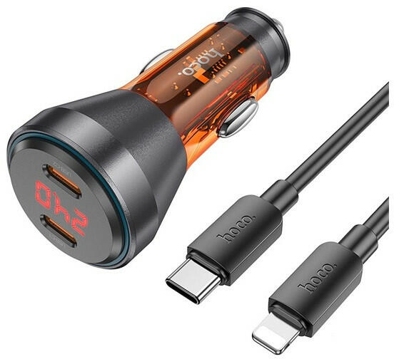 A Hoco autós szivargyújtó töltő egy modern, nagy teljesítményű töltési megoldás utazás közben. Két Type-C porttal rendelkezik, amelyek támogatják a Quick Charge 30W-os gyorstöltést, így több eszközt is egyszerre tölthetsz hatékonyan. A beépített digitális kijelző valós időben mutatja a töltési feszültséget és áramerősséget, így mindig pontosan láthatod a töl